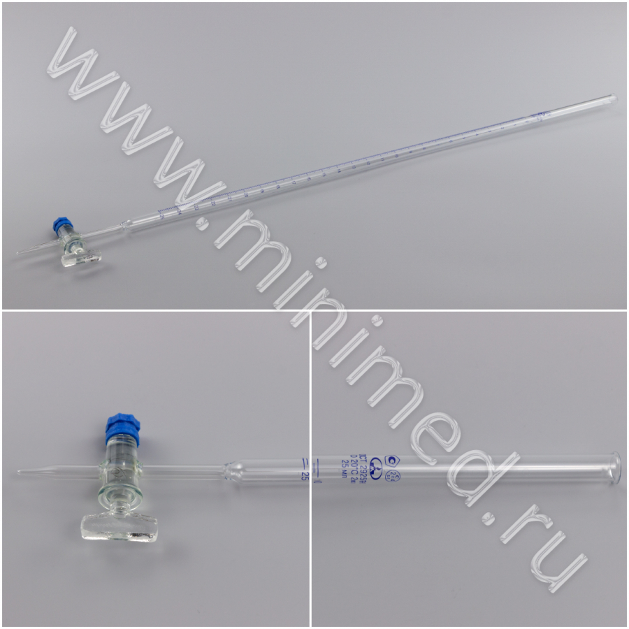 Бюретка 1-1-2-25-0,1 с краном, резьбовым уплотнением, ГОСТ 29251-91, МиниМедПром, уп. 3шт