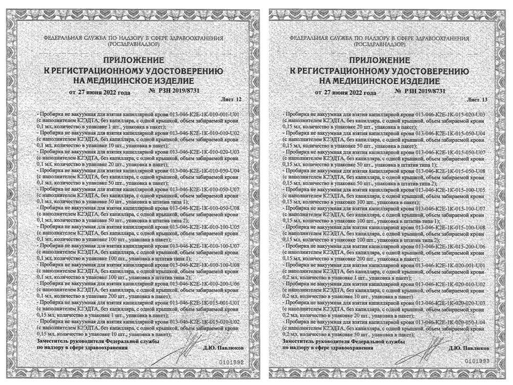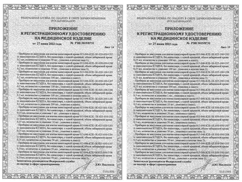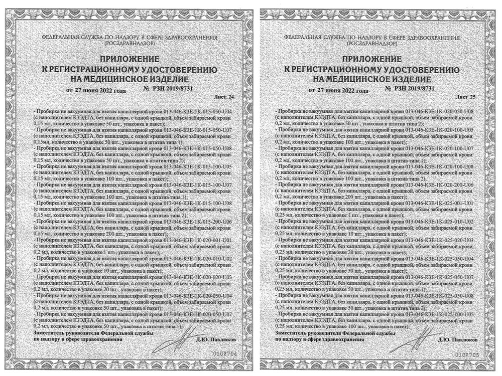 - Пробирки не вакуумные для взятия капиллярной крови. Перинт. Инф. письмо РРПП