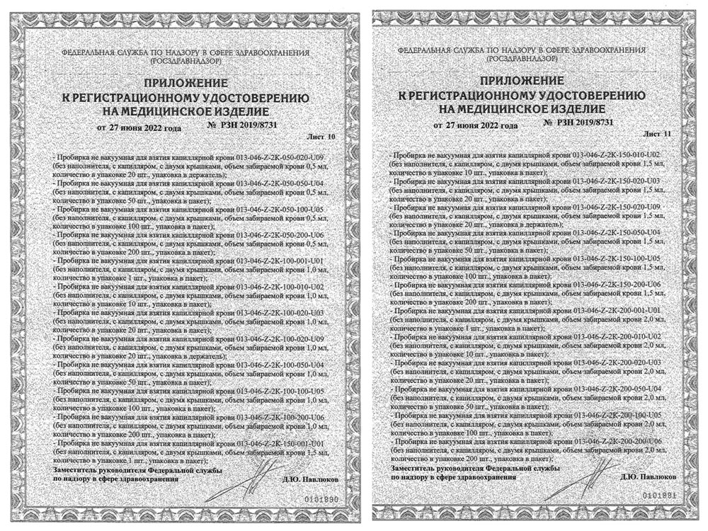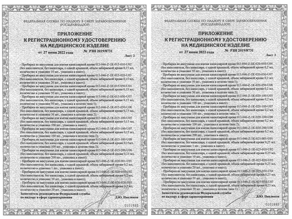 - Пробирки не вакуумные для взятия капиллярной крови однор. Перинт. РУ 2