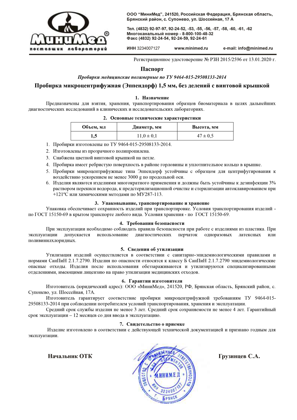 - Пробирки-медицинские-полимерные по ТУ-2014. РУ-1