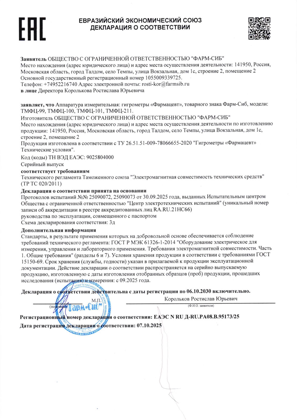 - Гигрометры Фармацевт ТМФЦ 99, 100,101,211. Декларация до 06.10.2030