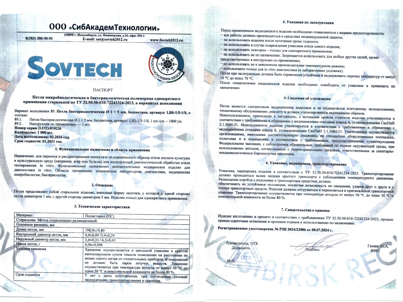 - Петля микроб. и бактер. полимерная стер. СибАкадемТехнологии. РУ-7