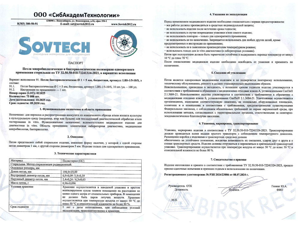 - Петля микроб. и бактер. полимерная стер. СибАкадемТехнологии. РУ-4