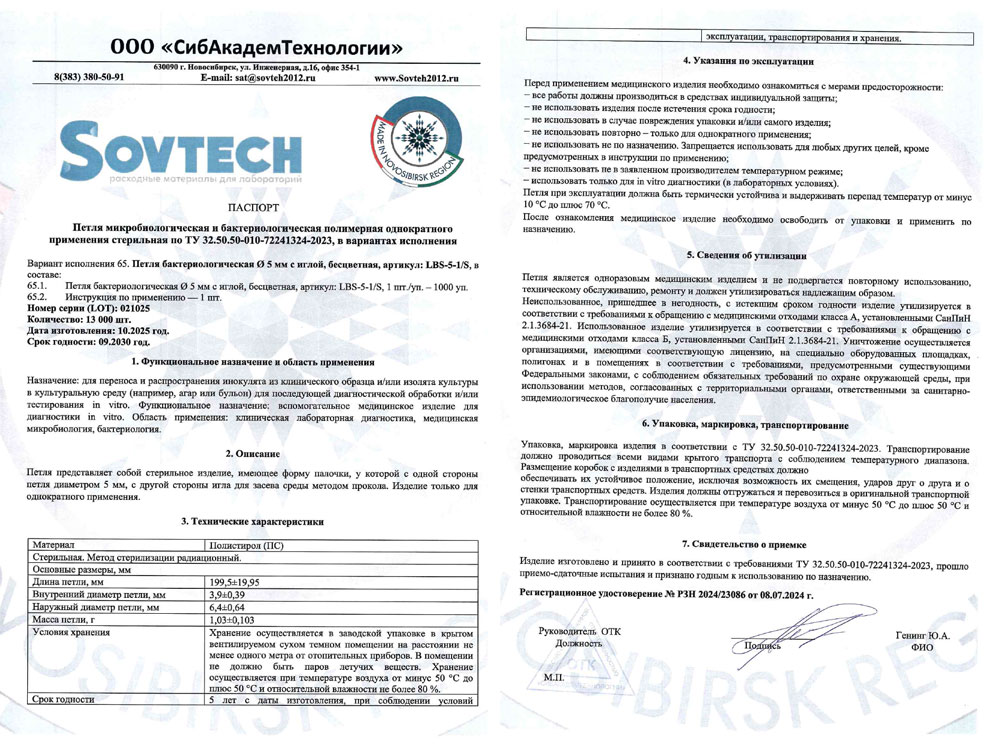 - Петля микроб. и бактер. полимерная стер. СибАкадемТехнологии. РУ-2