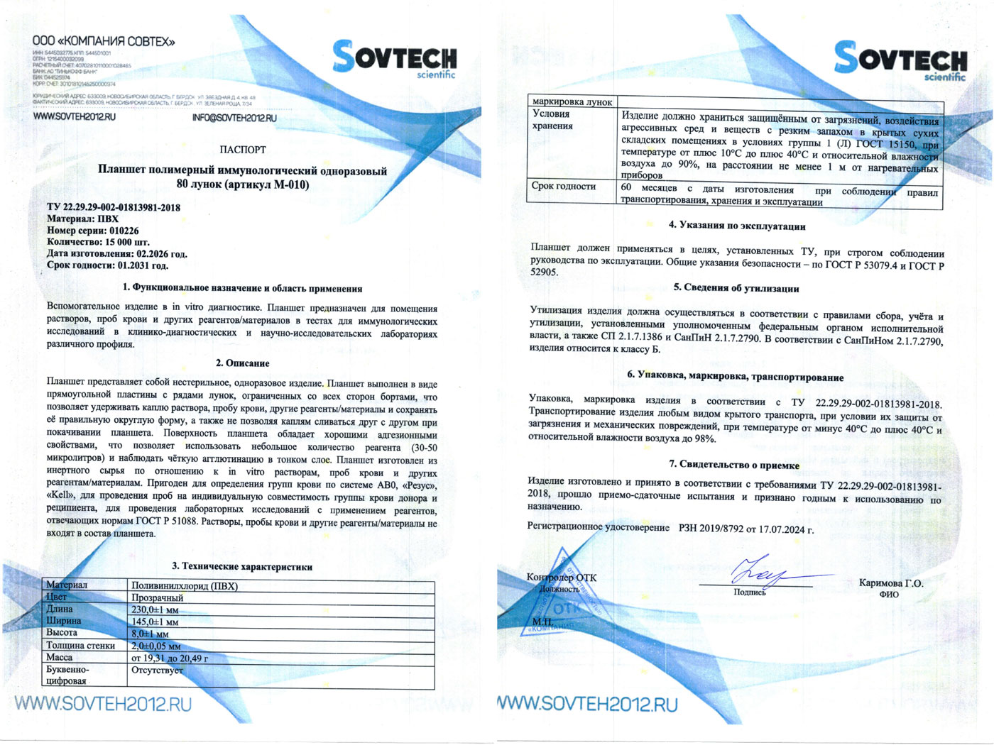 - Планшет иммунологический одноразовый. Совтех. РУ-2