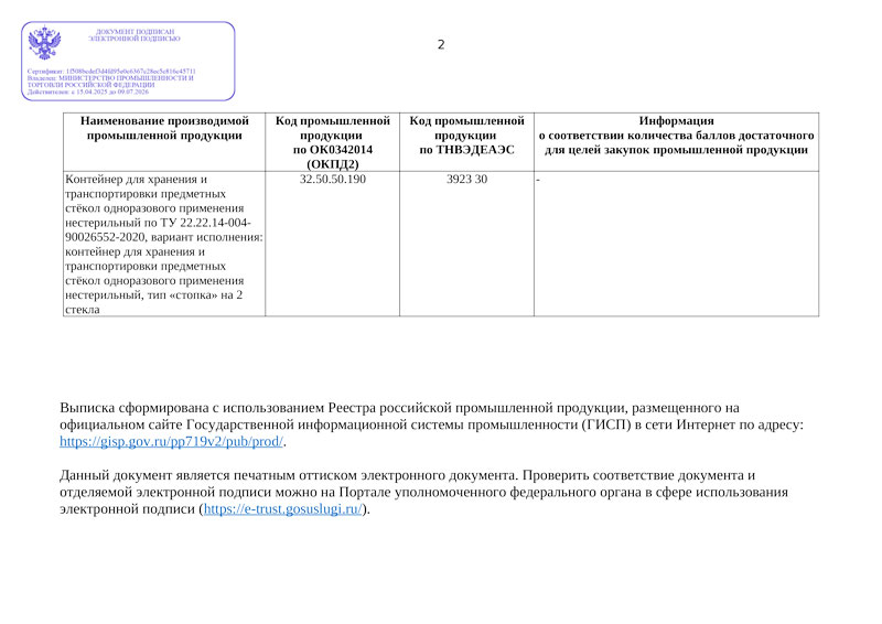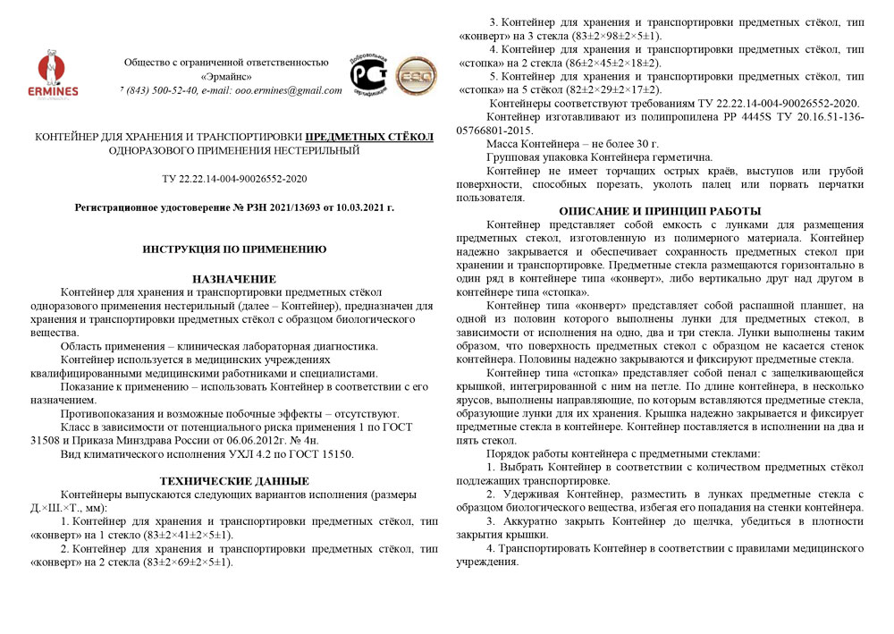 - Контейнер для пред. стекол нестер, тип стопка на 2 стекла. Выписка из РРПП до 28