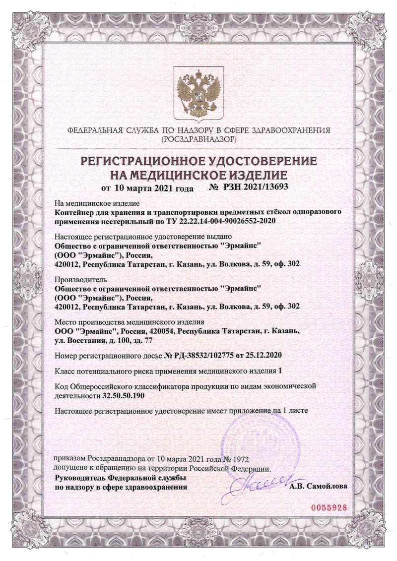 РУ № РЗН 2021/13693 от 10.03.2021 г