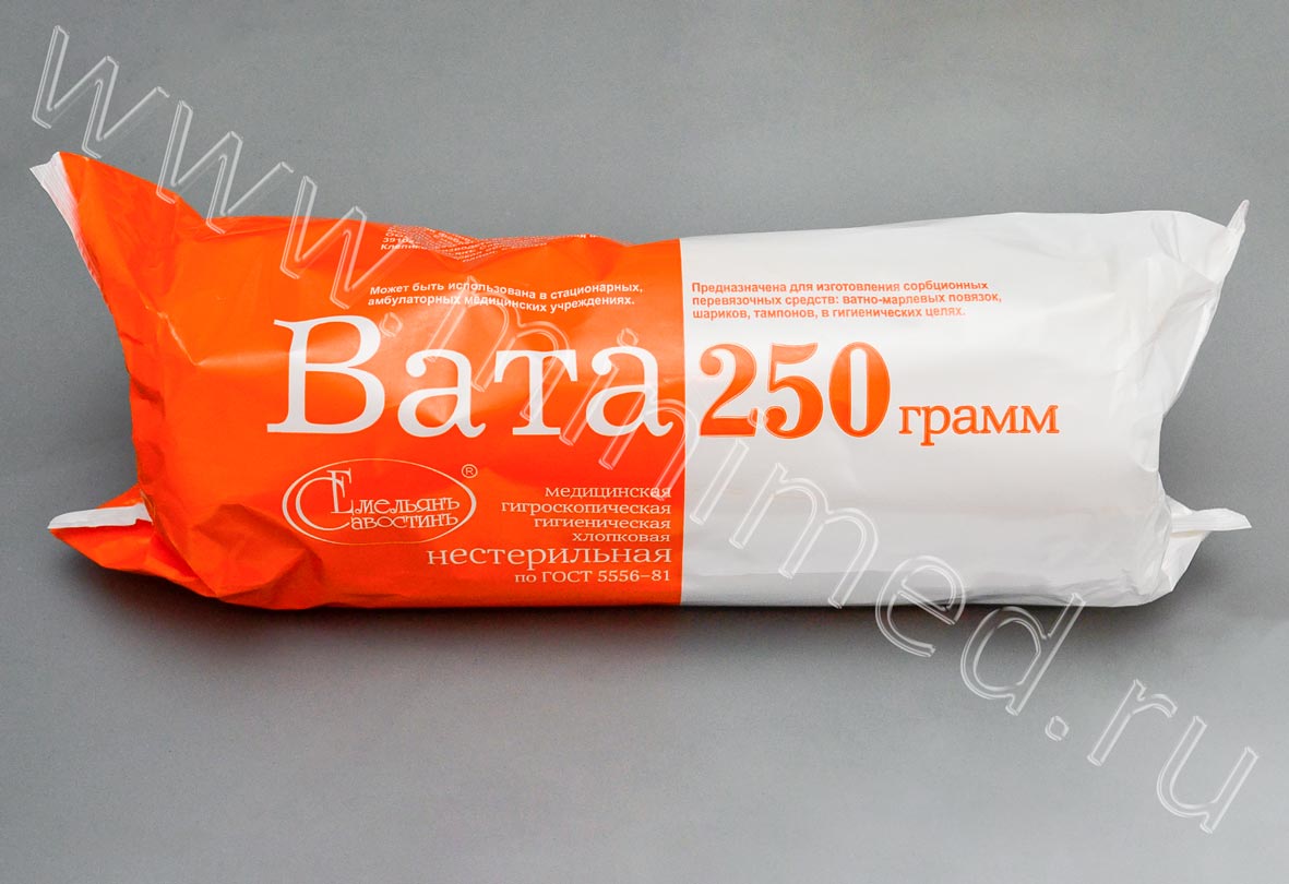 Вата медицинская гигроскопическая гигиеническая хлопковая, н/ст. 250 гр. Емельяновская
