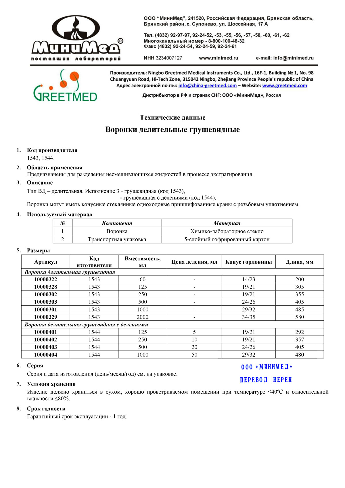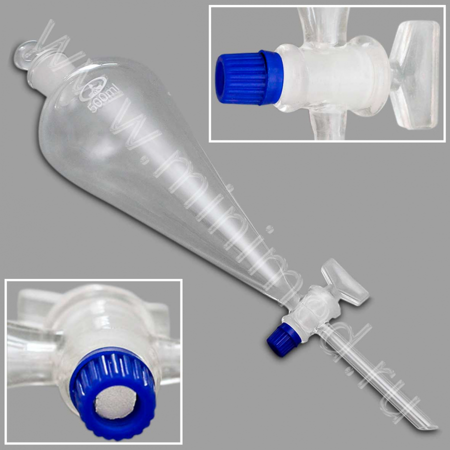 Предназначены для разделения несмешивающихся жидкостей в процедурах экстрагирования. Изделия изготовлены из химико-лабораторного стекла. Материал гайки АБС-пластик.
