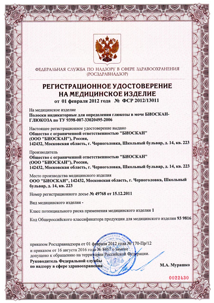РУ № ФСР 2012/13011 от 01.02.2012 г.