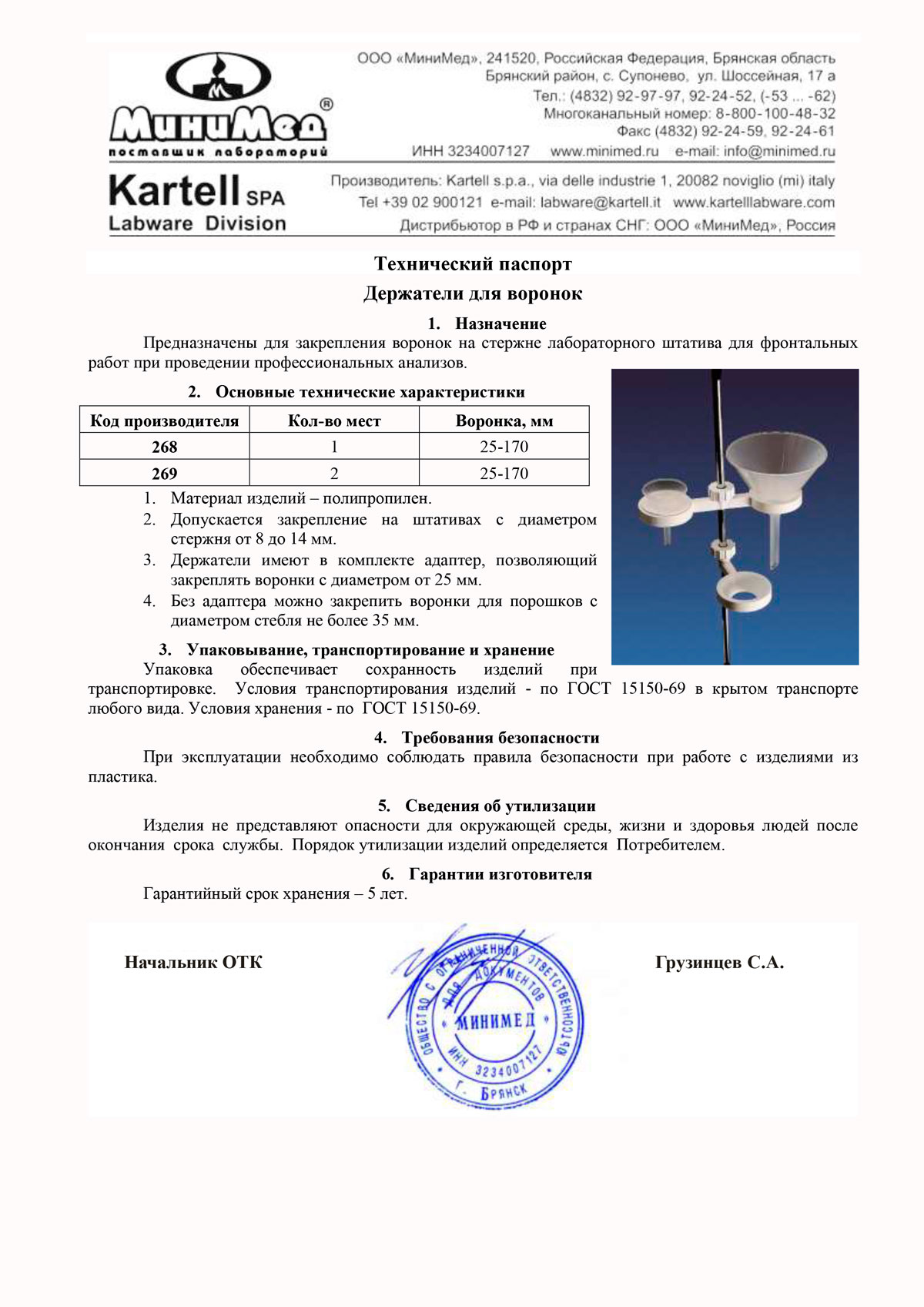 Держатель для воронок от 25мм до 170мм, двойной, п/п, Kartell, шт