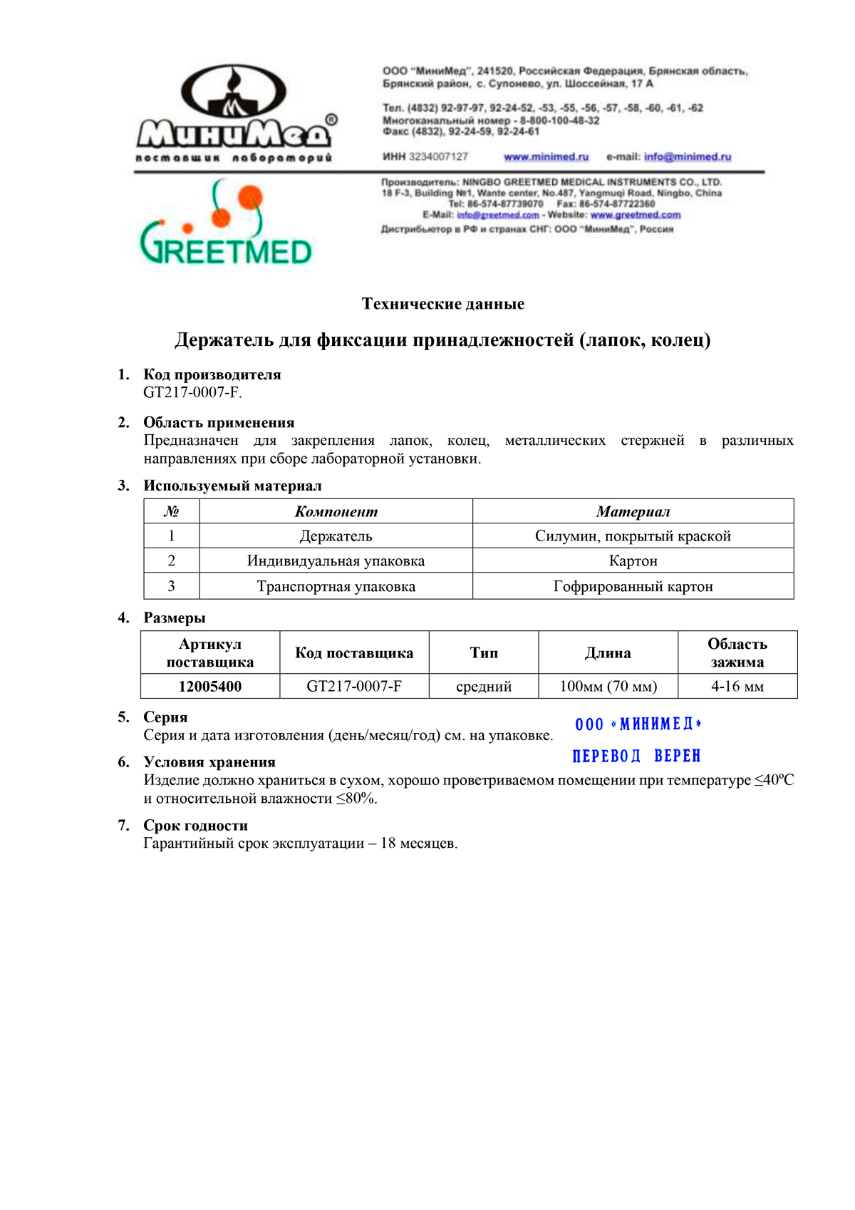 Держатель для фиксации принадлежностей (лапок, колец) 4-16 мм, инд.уп./10 шт