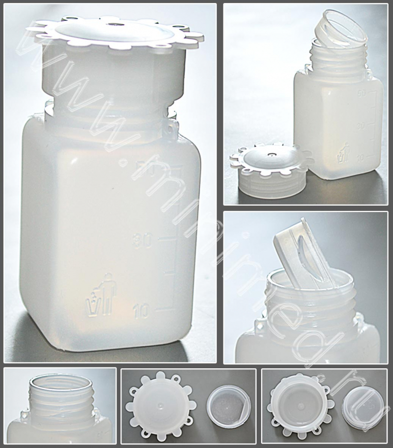 Предназначены для хранения образцов с оптимальным использованием имеющегося пространства; градуировка позволяет определить примерный объем содержимого. Под крышкой имеется внутренняя пробка. Снабжены петельками на крышке и на горлышке, которые используются для опломбирования или крепления информационных табличек. Изготовлены из полиэтилена (ПЭВП)