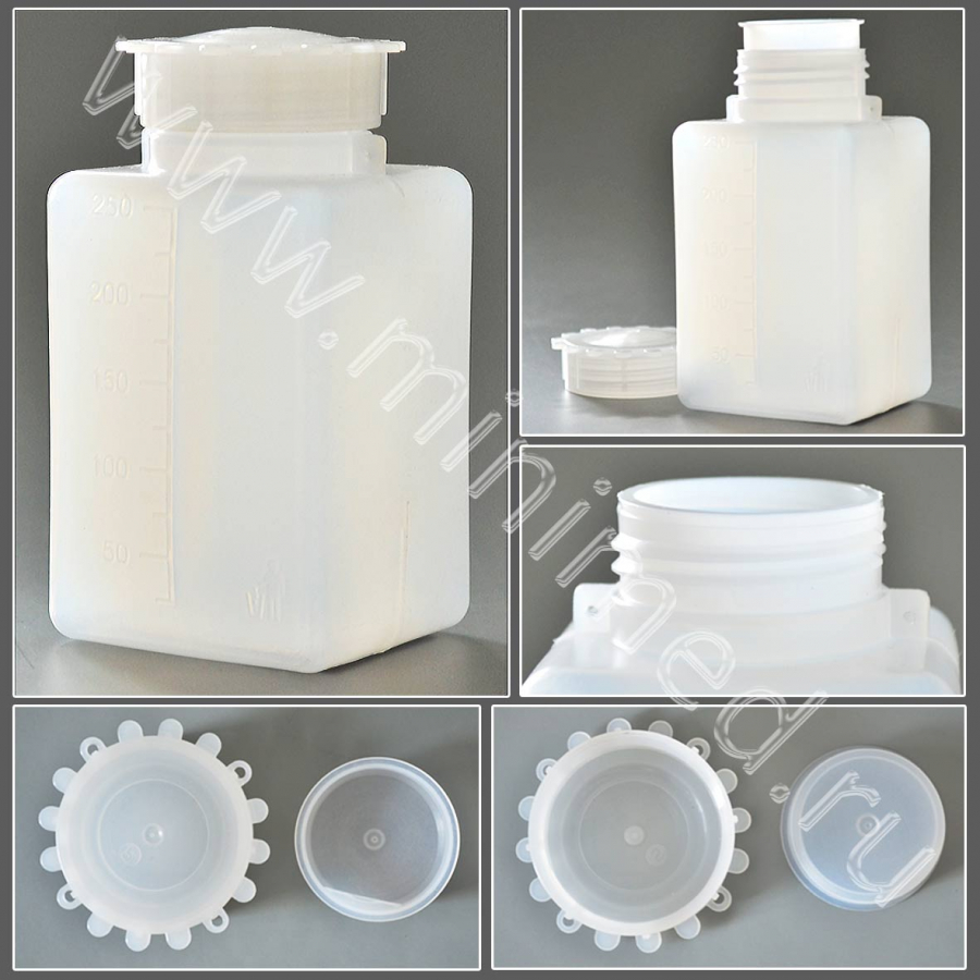 Предназначены для хранения образцов с оптимальным использованием имеющегося пространства; градуировка позволяет определить примерный объем содержимого. Под крышкой имеется внутренняя пробка. Снабжены петельками на крышке и на горлышке, которые используются для опломбирования или крепления информационных табличек. Изготовлены из полиэтилена высокой плотности (ПЭВП).