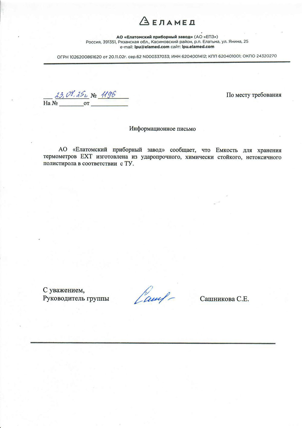 - Емкость для хранения термометров EXT Инф. письмо НДС