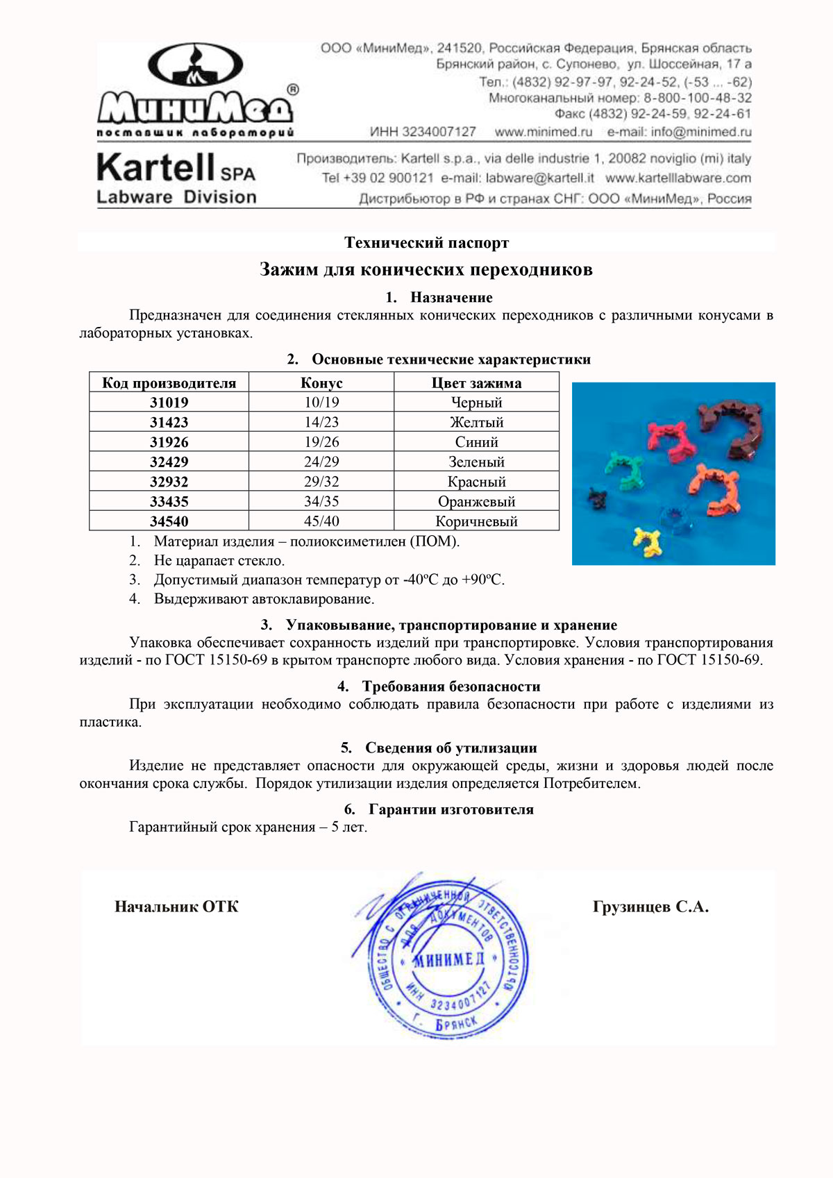 Предназначен для фиксирования стеклянных конических переходников с различными конусами в лабораторных установках. Не царапает стекло. Выдерживает автоклавирование. Имеет различные цветовые исполнения.