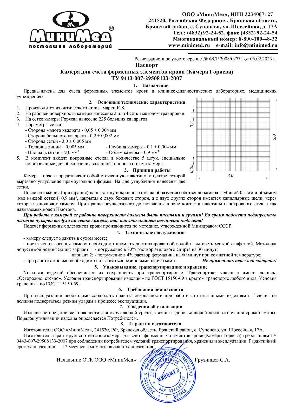 - Камера Горяева 2-х и 4-х сет. методом гравировки - РУ 2023