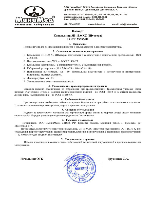 Капельница Шустера применяется для дозирования индикаторов и иных растворов в лабораторной практике. Изготовлена из стекла ХС1 по ГОСТ 21400-75.