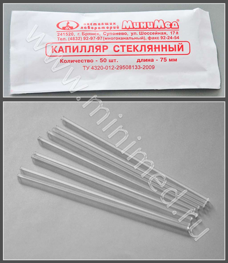 Капилляр стеклянный 75 мм, МиниМед, уп.50/5000 шт