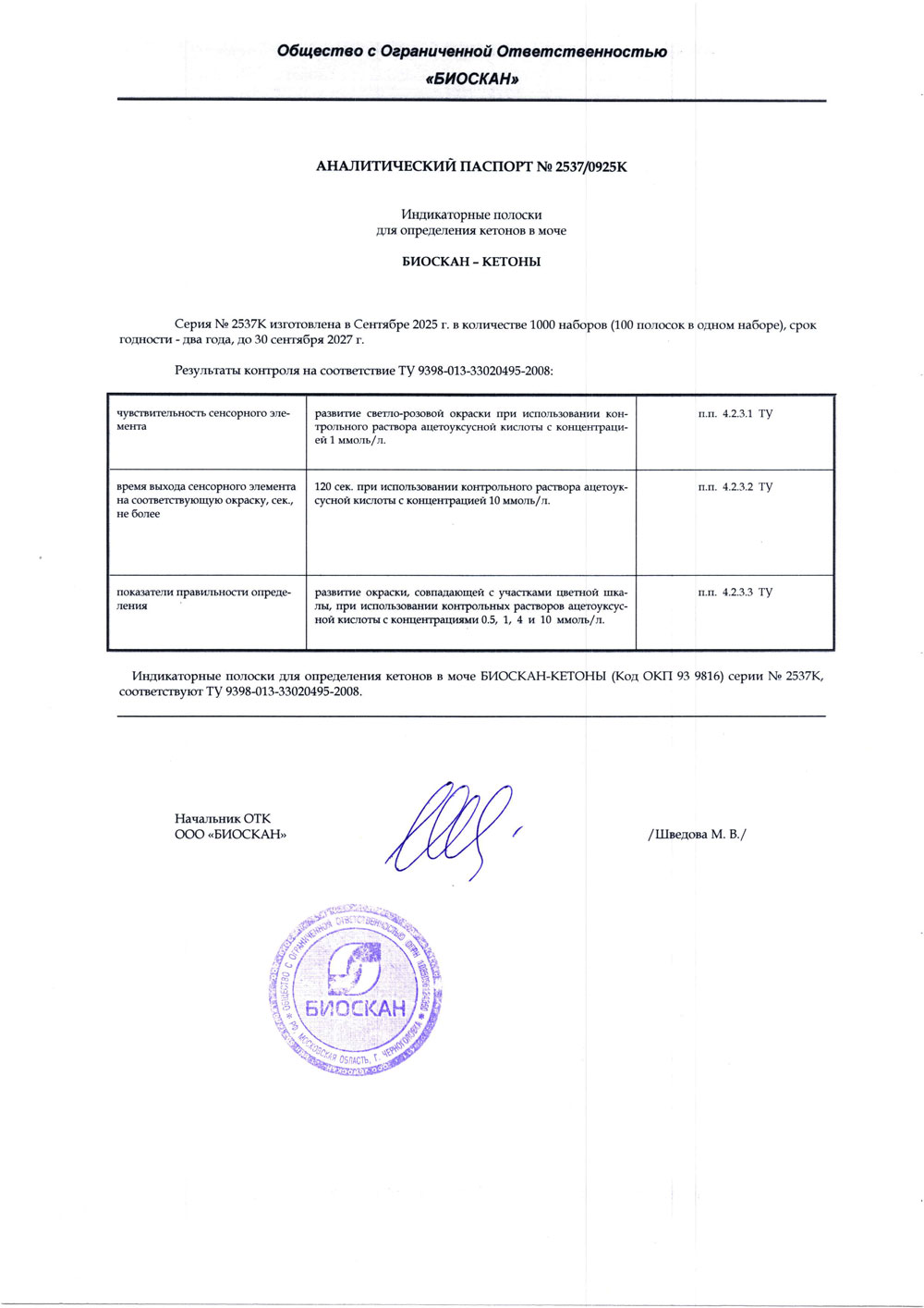 - Полоски индикаторные БИОСКАН-КЕТОНЫ, с. № 2537К от 09.2025