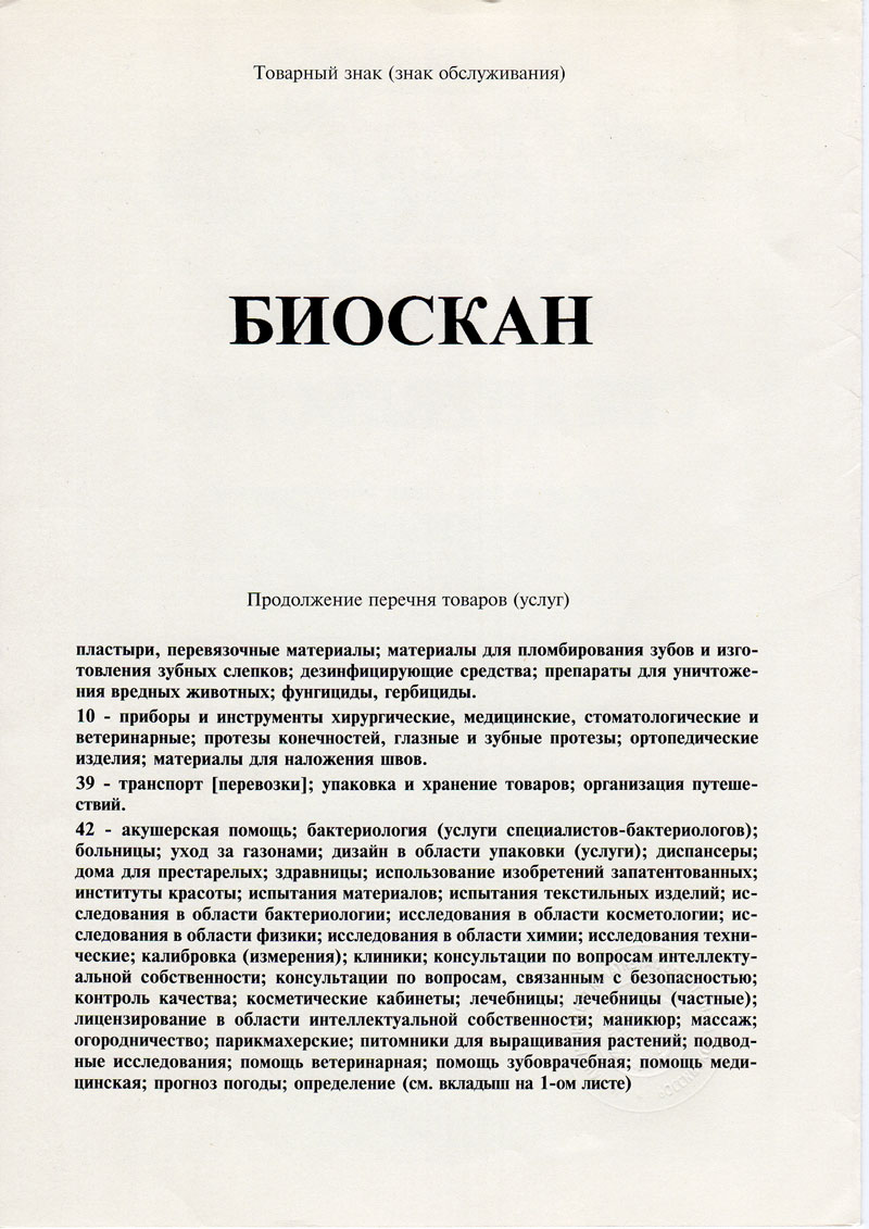 - БИОСКАН. Первичная регистрация товарного знака-2