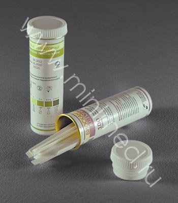 Полоски предназначены для экспресс-анализа содержания кетонов в моче человека. Работа индикаторного элемента полосок основана на хорошо известной специфической реакции двух кетонов — ацетоуксусной кислоты и ацетона — с нитропруссидом натрия в щелочной среде (реакция Легаля). В результате этой реакции индикаторный элемент полоски окрашивается в фиолетовый цвет, интенсивность которого возрастает с увеличением содержания кетонов в моче.Полоски могут быть использованы при массовых обследованиях здоровья населения, при обычных анализах мочи в клиниках и поликлиниках. Полоски могут применяться как медицинским персоналом, так и самими пациентами в порядке самоконтроля.