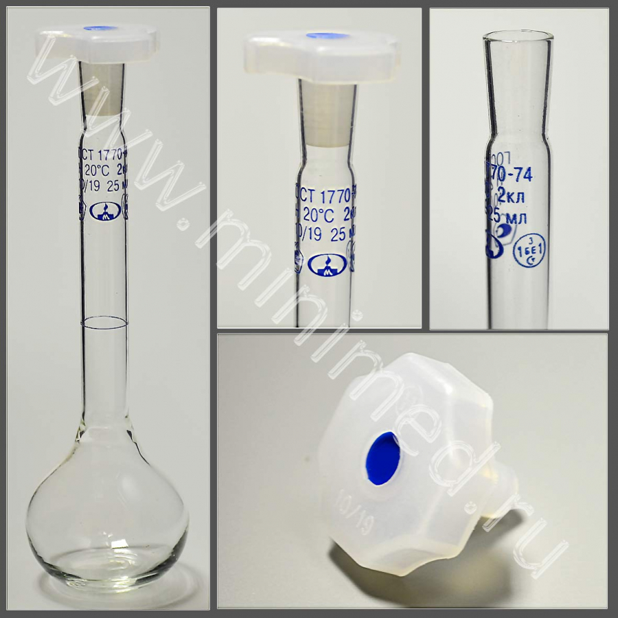Колба 2а-25-2 мерная, с пробкой, ТУ 9464-013-52876351-2014, ГОСТ 1770-74, МиниМедПром, уп.12 / кор.288 шт,