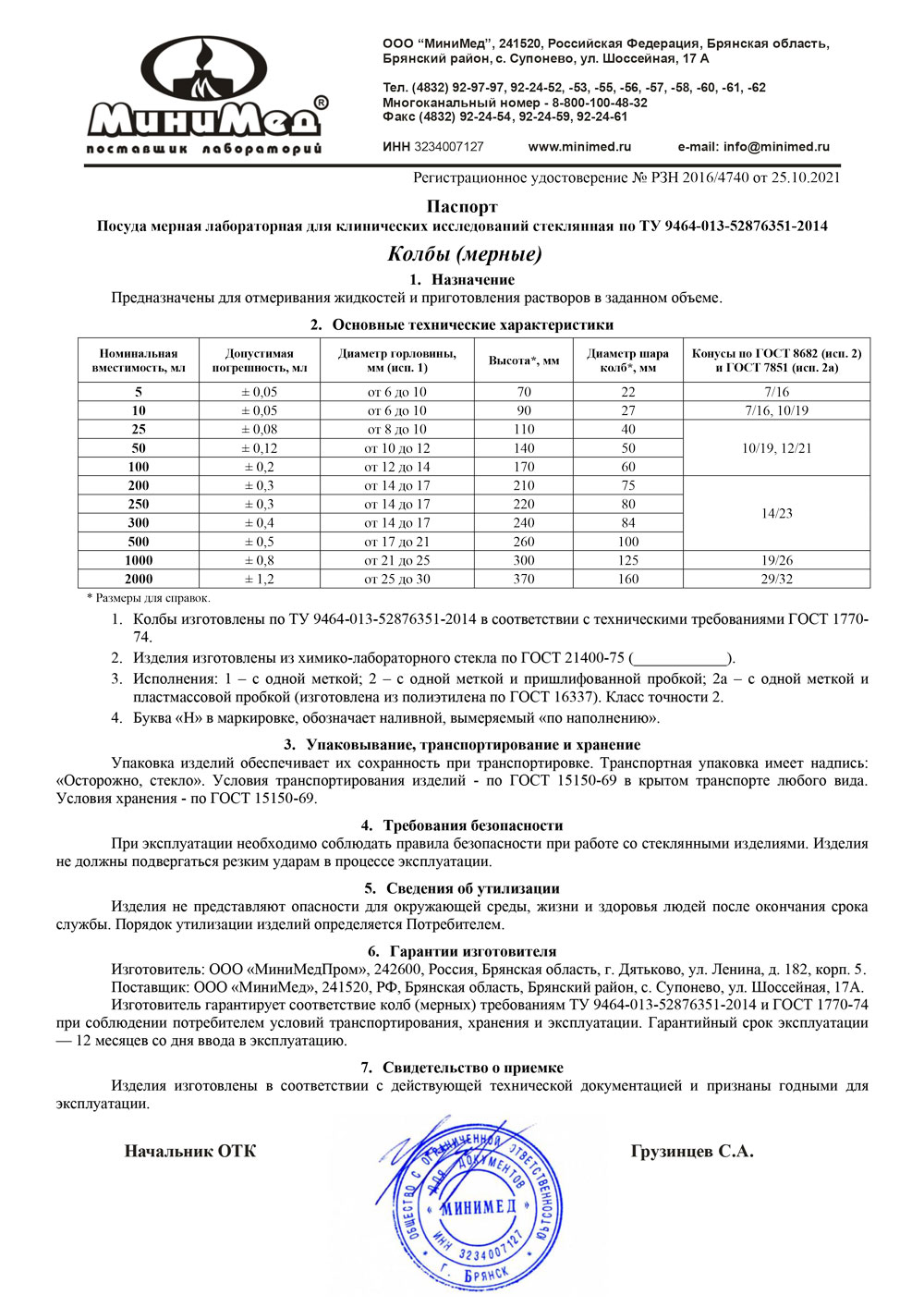 - Колбы исполнений 1, 2, 2а, 3, 4, 4а. ММП. Беларусь. Сертификат ТСИ до 18.04.2028