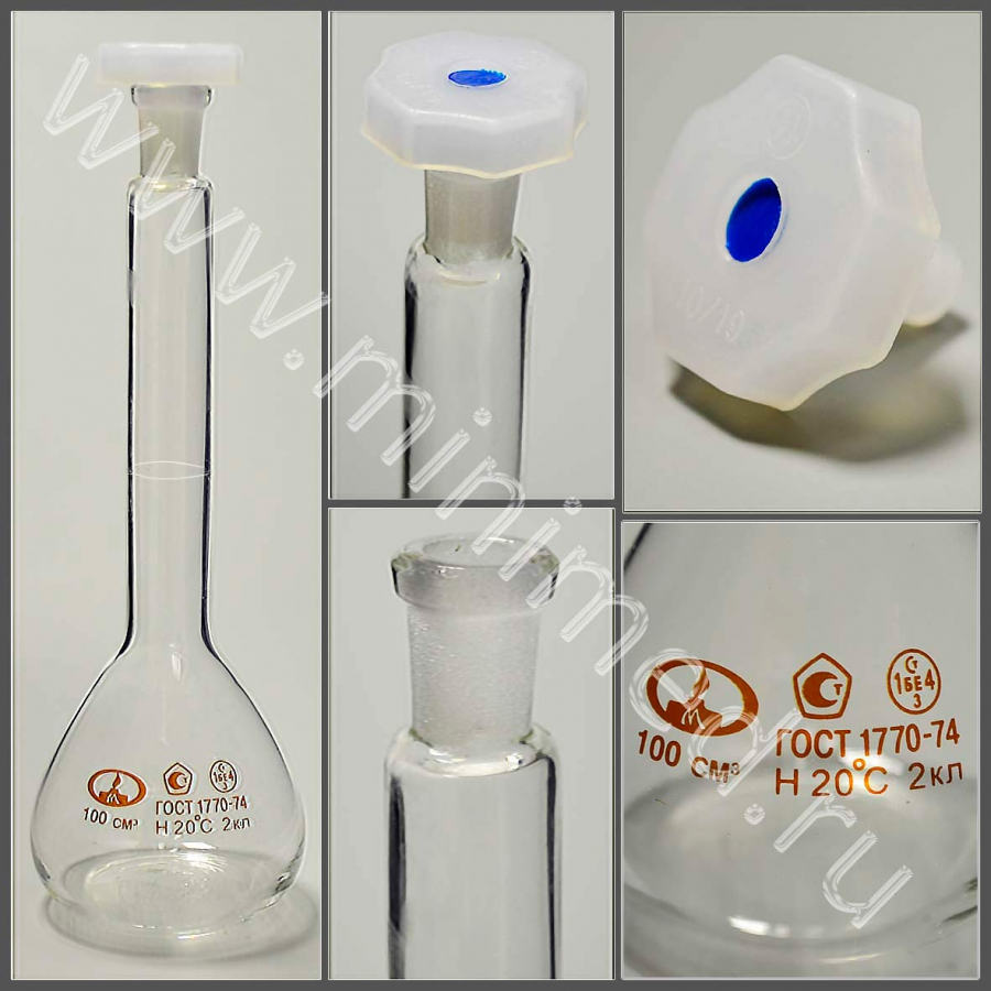 Колба 2а-100-2 мерная, с пробкой, ТУ 9464-013-52876351-2014, ГОСТ 1770-74, МиниМедПром, уп.6 шт./кор.144 шт