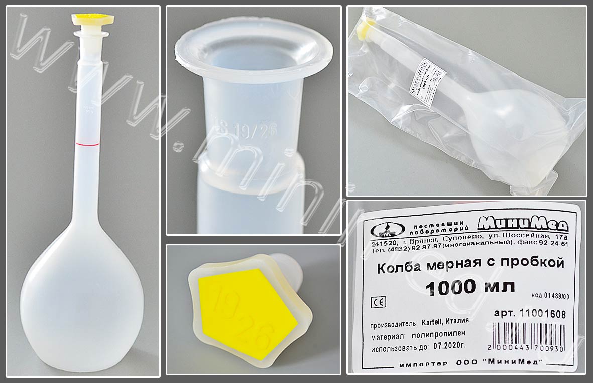 Колба мерная 1000 мл, с пробкой,п/п, Kartell, шт