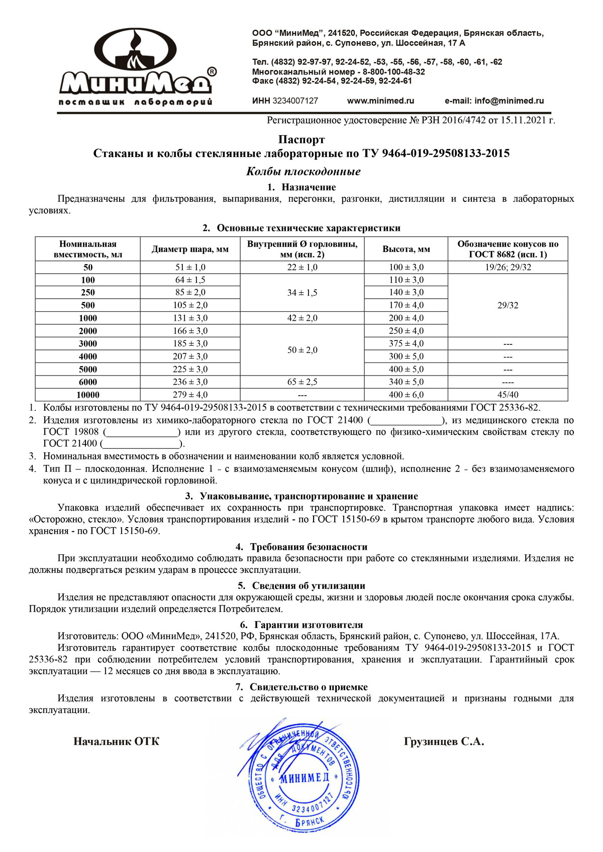 - Стаканы и колбы стеклянные лабораторные. МиниМед. Беларусь. РУ-1