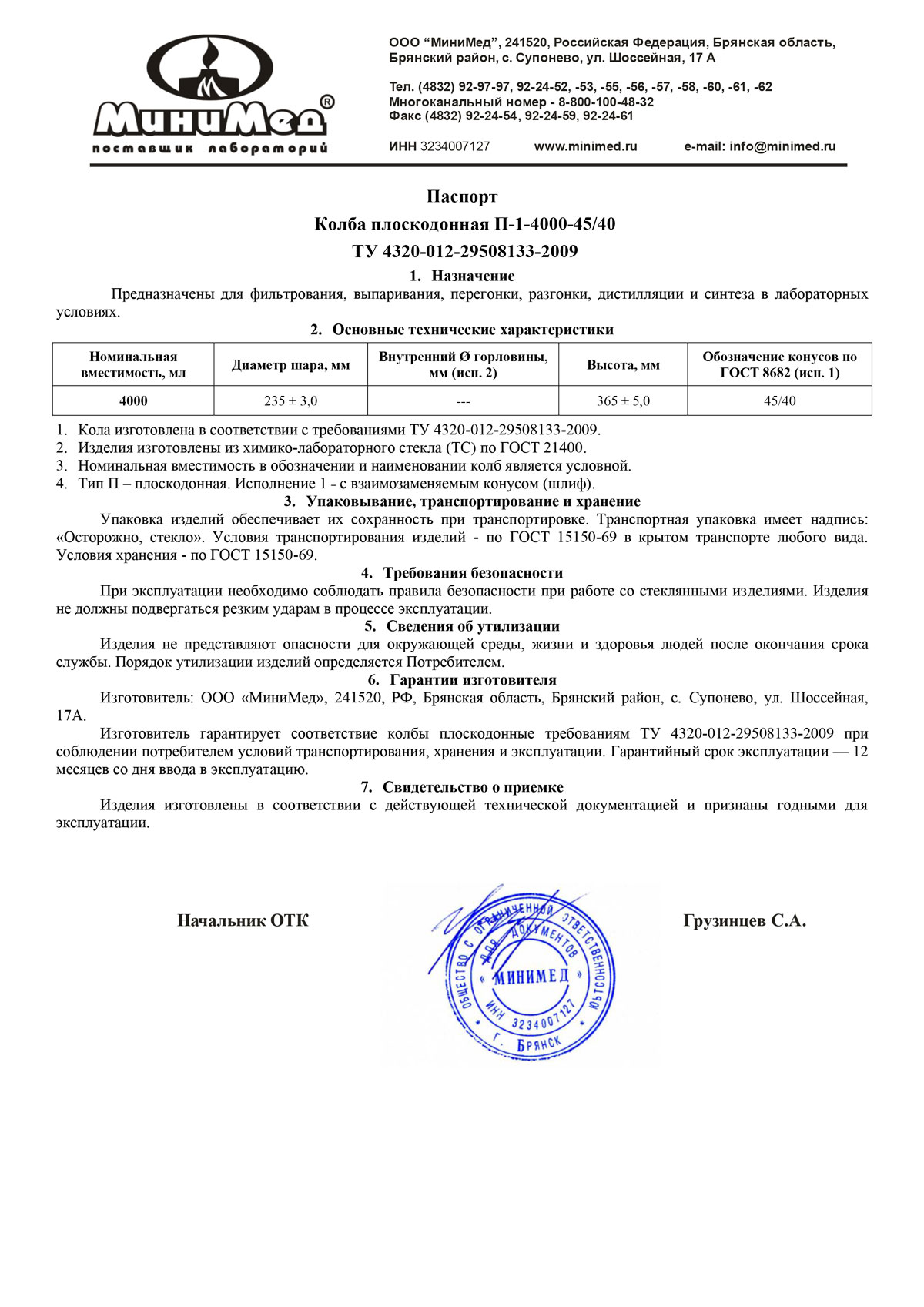 Колбы изготовлены по ТУ 4320-012-29508133-2009
