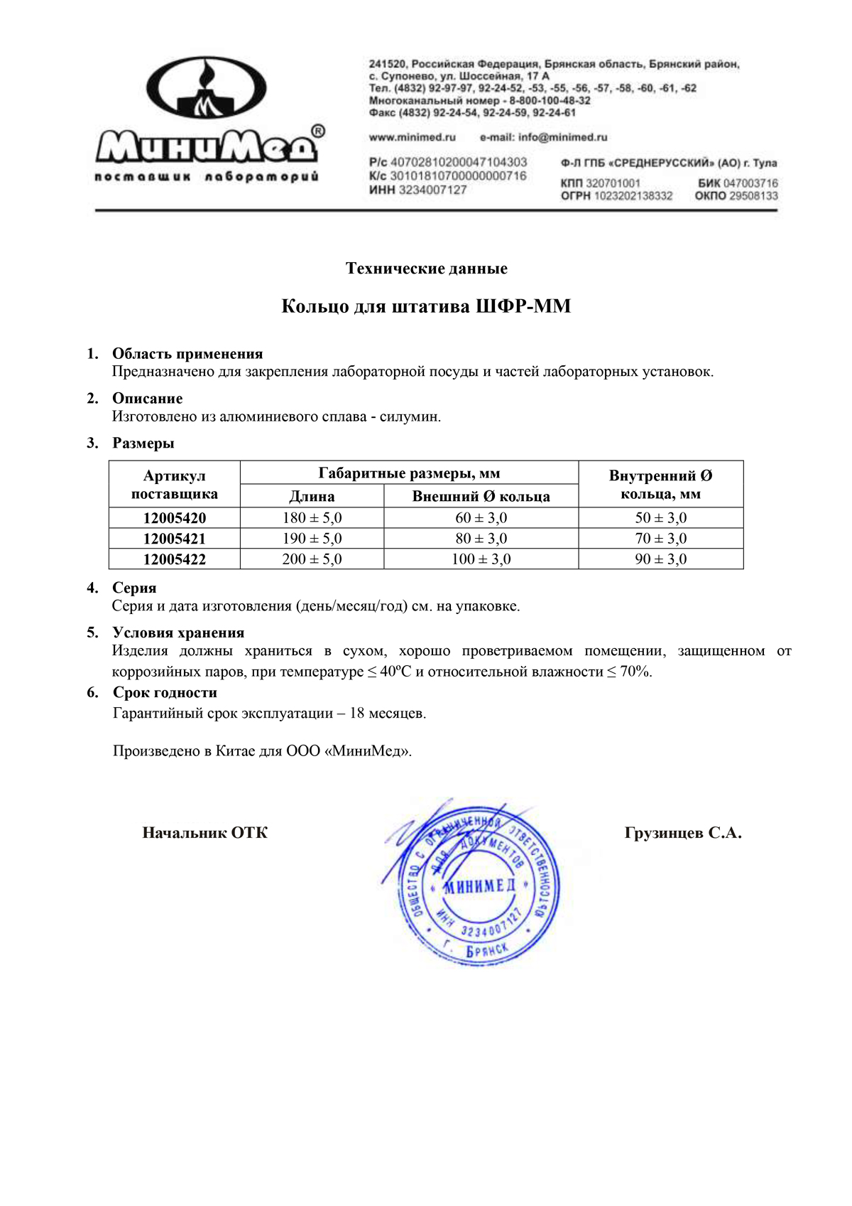 Кольцо для штатива ШФР-ММ, внутр. диам. 90±3,0 мм, инд.уп
