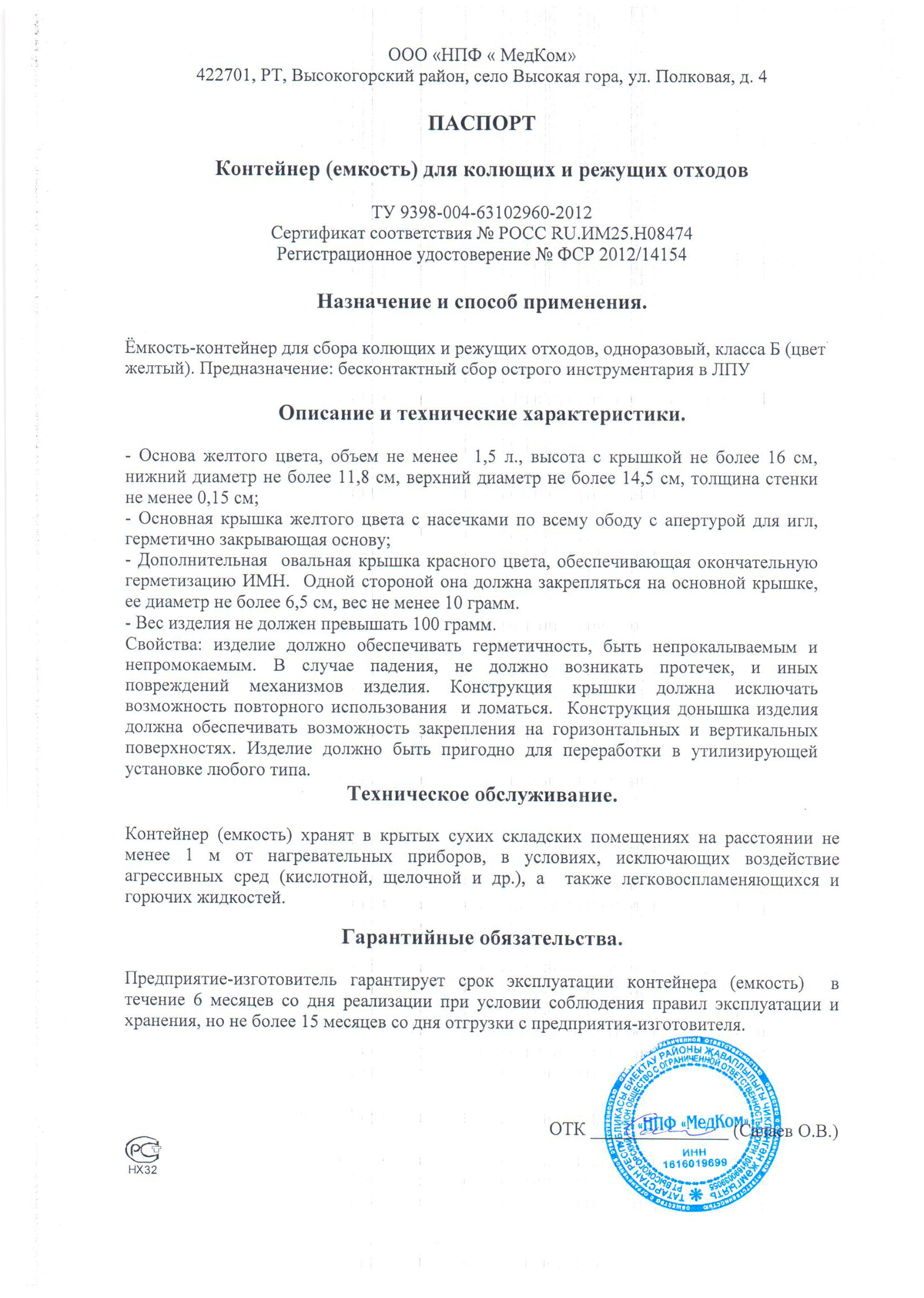 - Контейнеры для сбора, хранения и транспорт. мед. отходов МК-МедКом. Сертификат д