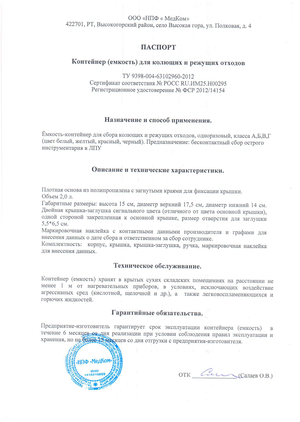 - Контейнеры для сбора, хранения и транспорт. мед. отходов МК-МедКом. Сертификат д
