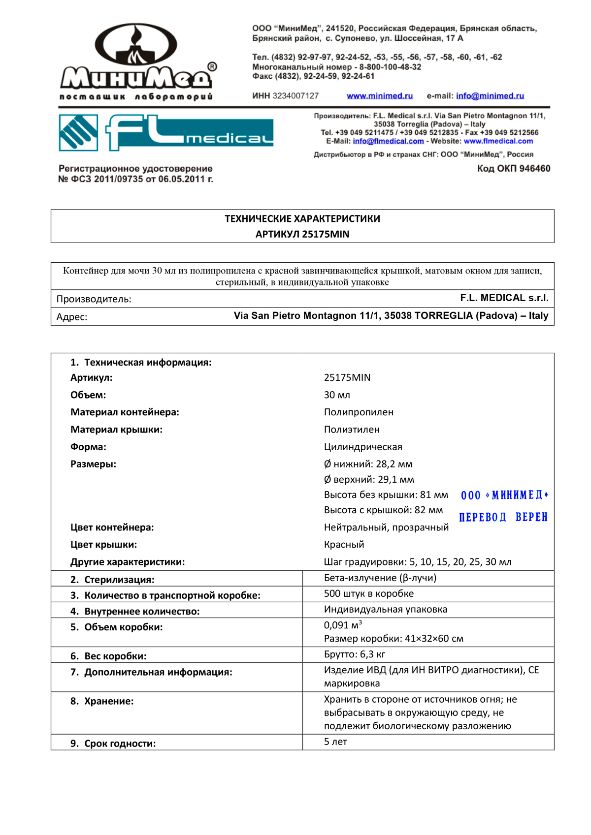 Контейнер лаб. д/взятия проб, 30 мл с завинч. крыш.,стер.,п/п.,FL medical,инд.уп./кор.500 шт.