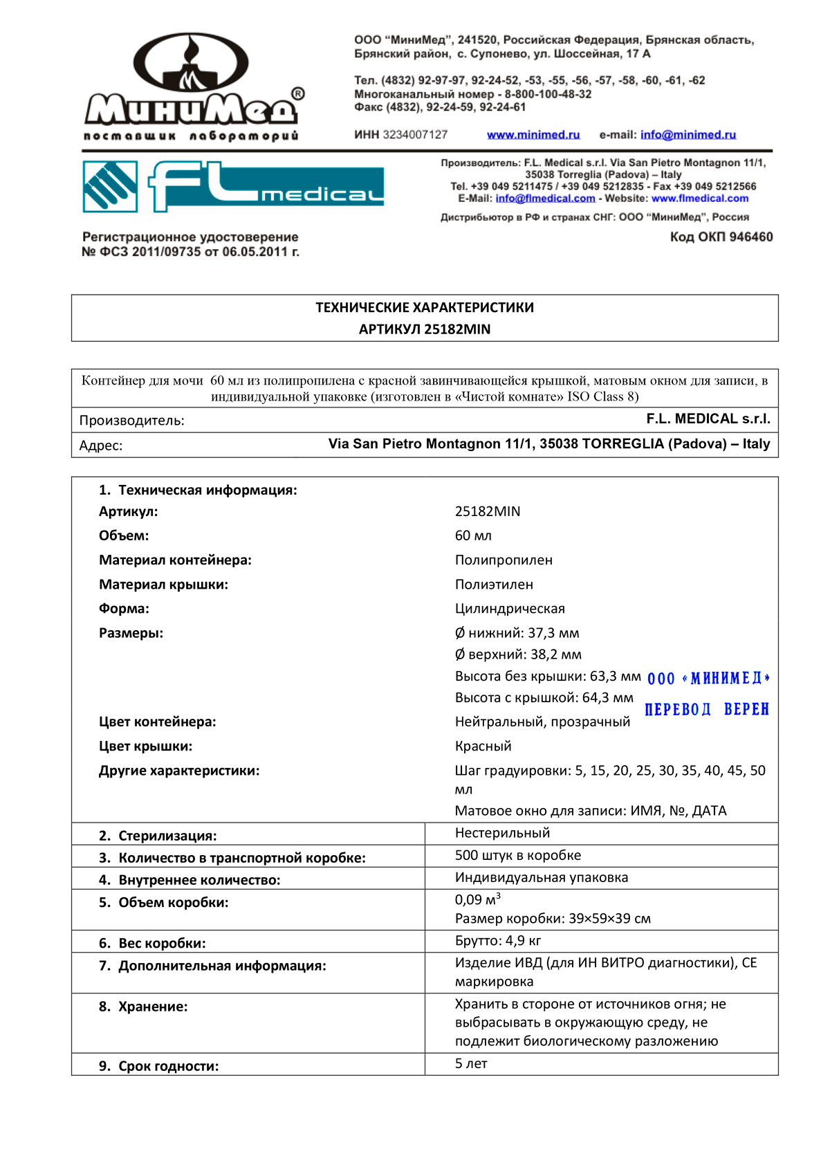 Обеспечивает полную герметичность при транспортировке биологического материала. Контейнер изготовлен из полипропилена, крышка из полиэтилена. Имеет градуировку и матовое окошко для записи. Нестерильный.