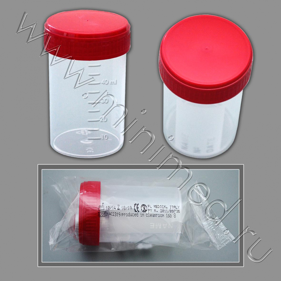 Контейнер лаб. д/взятия проб, 60 мл с завинч. крыш.,н/стер.,п/п,FL medical,инд.уп./кор.500 шт.