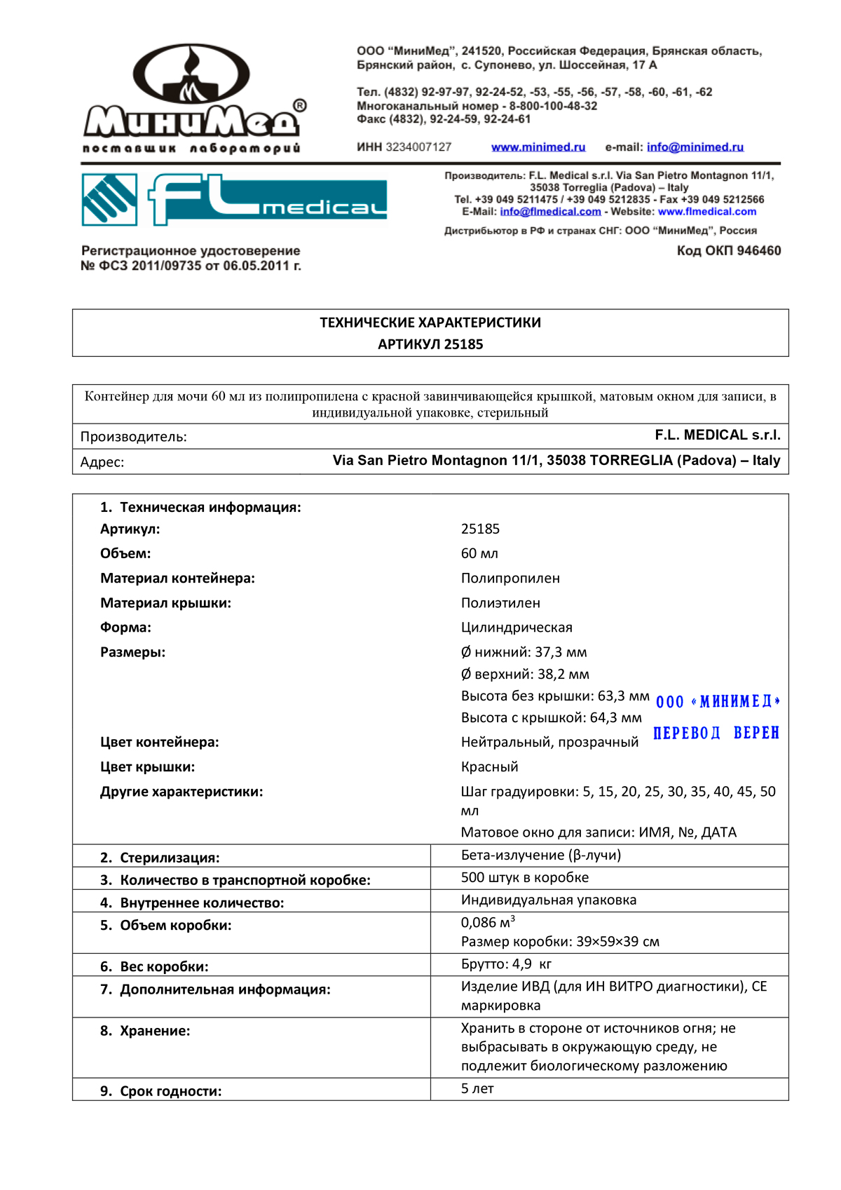 Обеспечивает полную герметичность при транспортировке биологического материала. Материал контейнера - полипропилен, крышки - полиэтилен. Имеет градуировку и матовое окошко для записи. Стерильный.