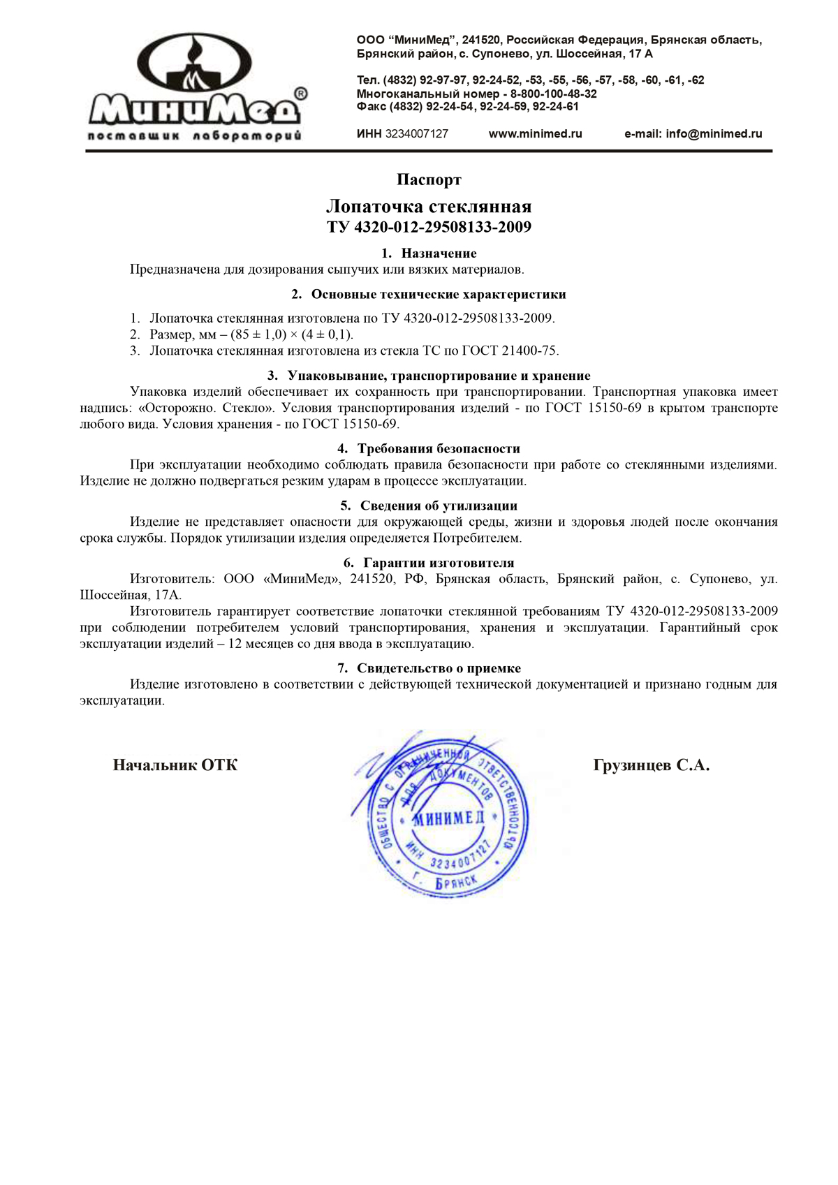 Предназначена для переноса сыпучих или вязких материалов. Изготовлена из стекла ТС по ГОСТ 21400-75.