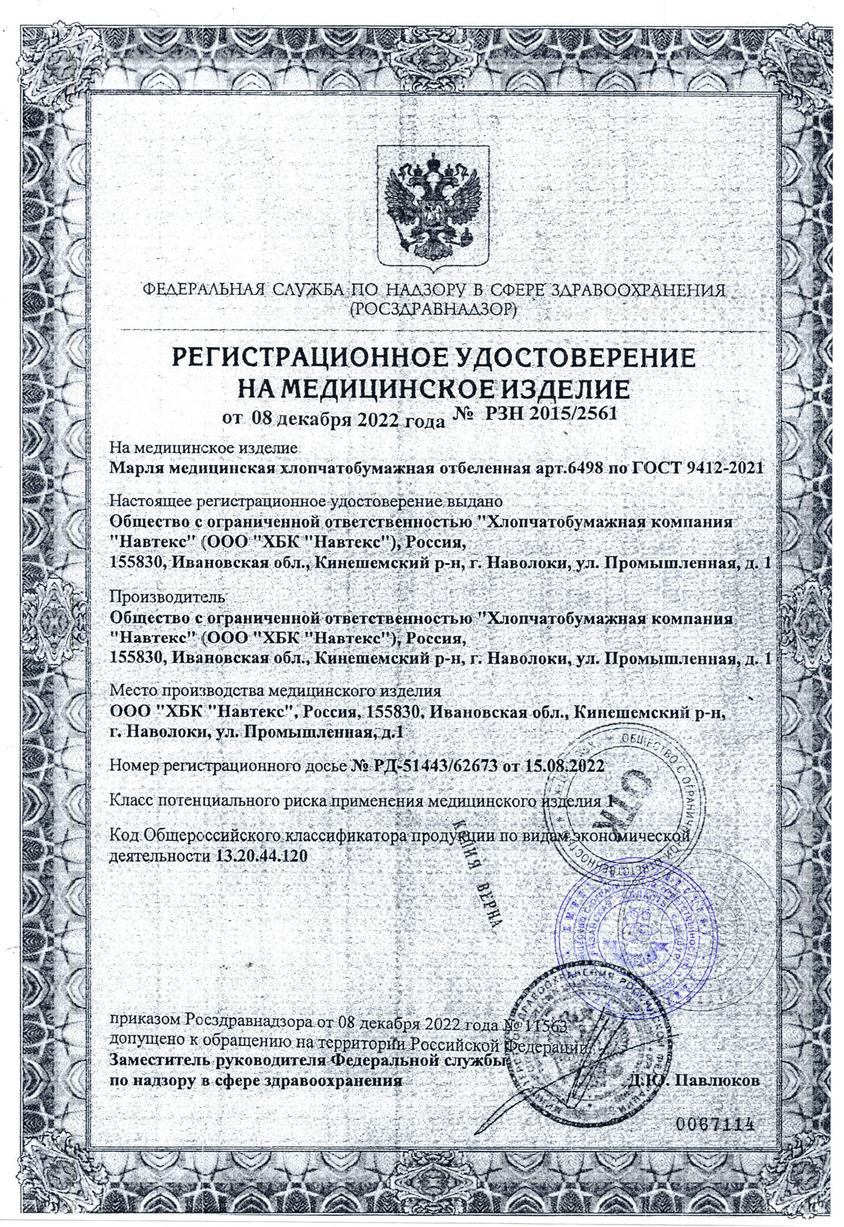 РУ № РЗН 2015/2561 от 08.12.2022 г.