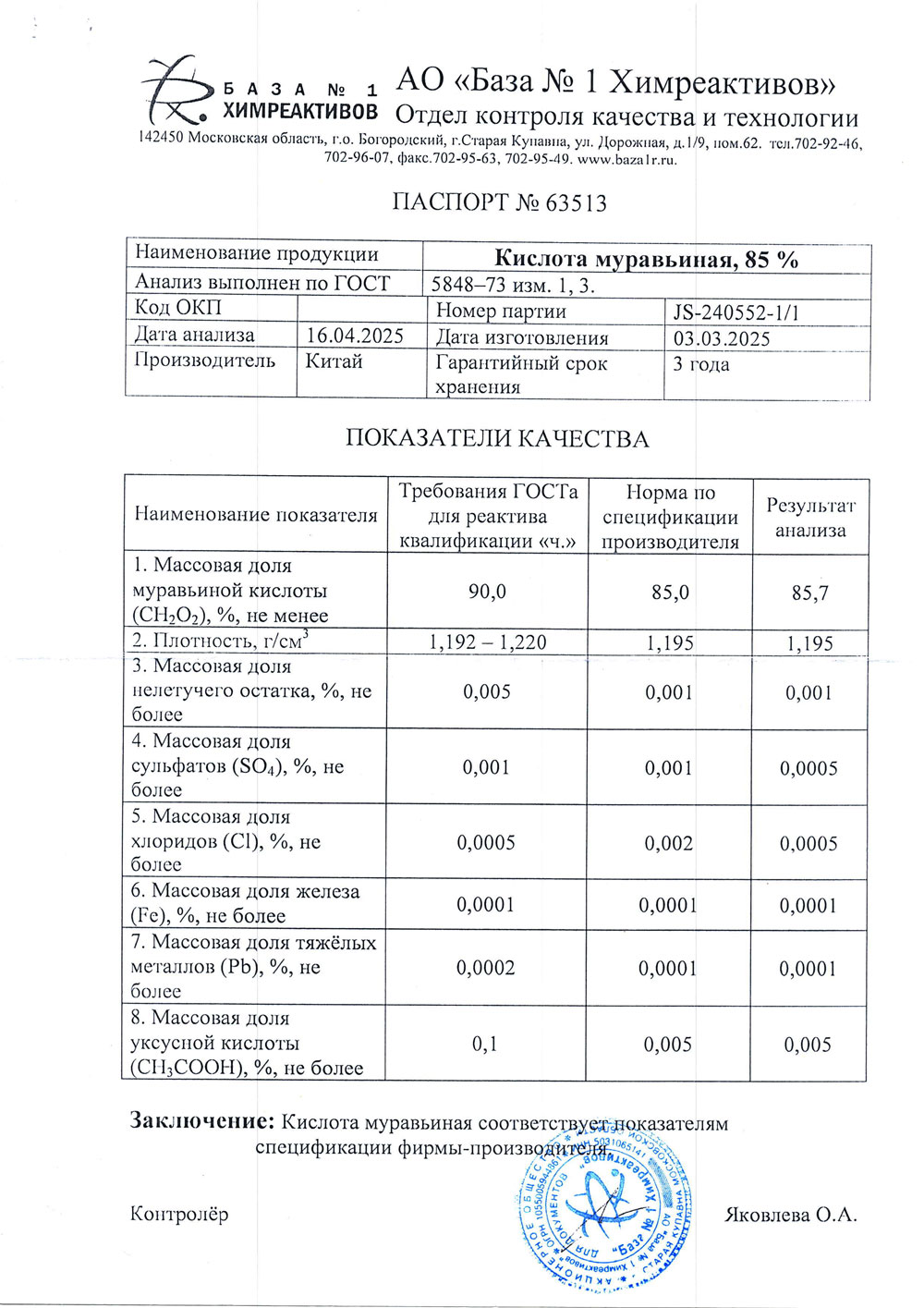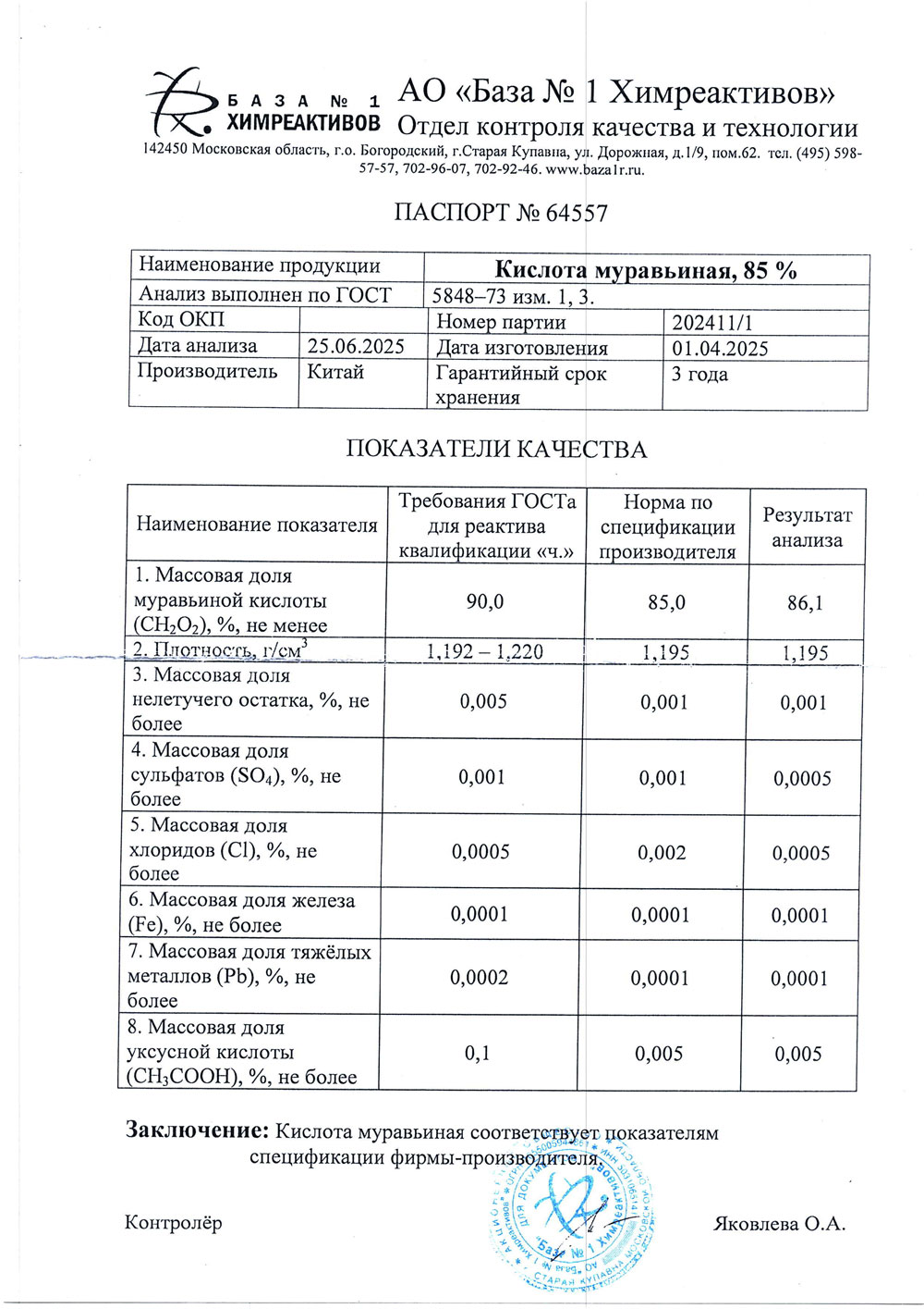 Муравьиная кислота, 85%, имп ,1,2 кг