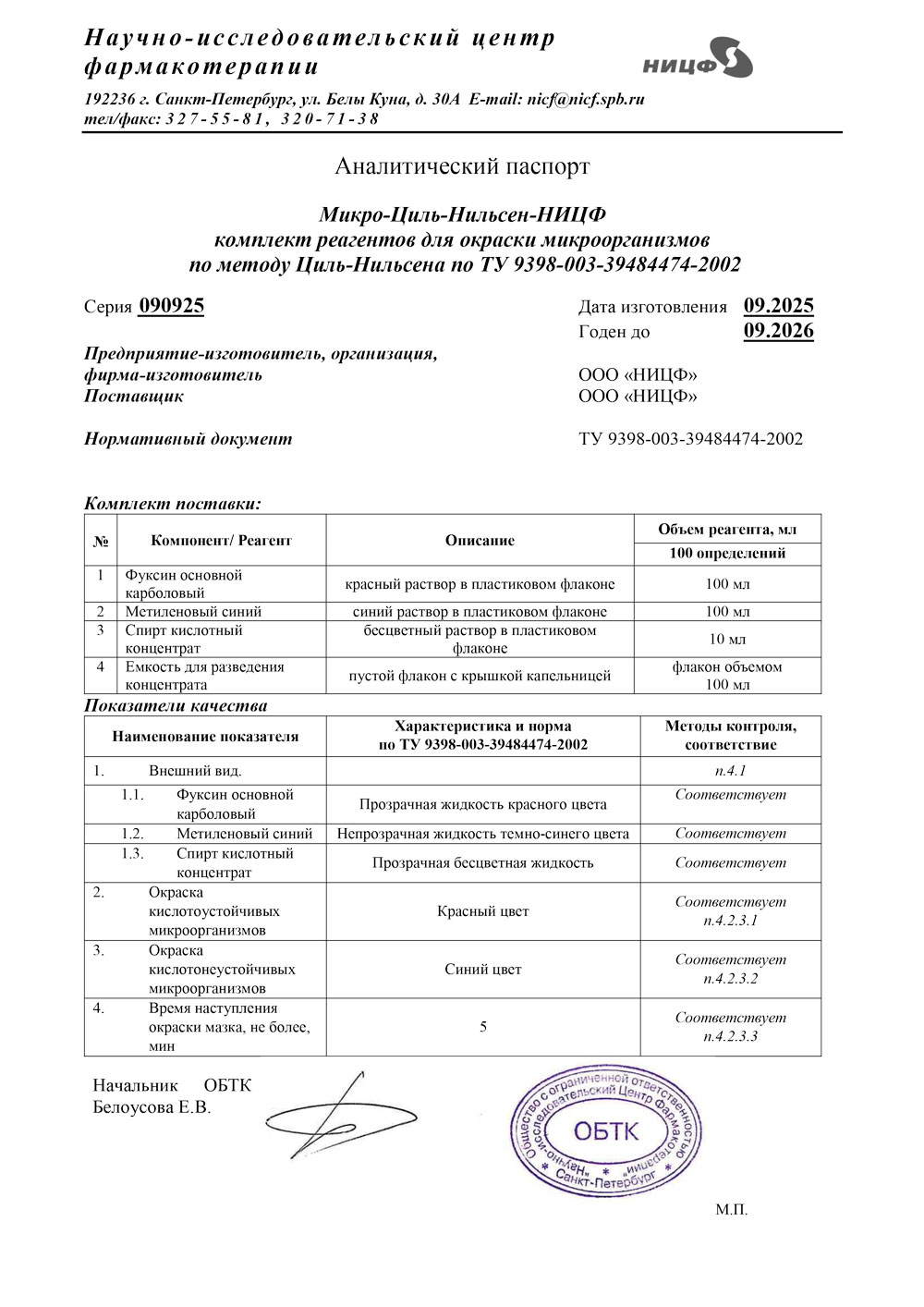 - Комплект реагентов Микро-ЦИЛЬ-НИЛЬСЕН-НИЦФ. с. 090925 до 09.2026