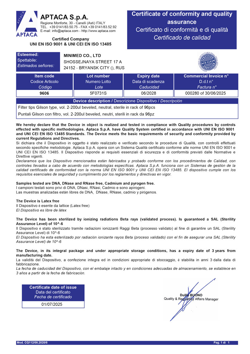 - Сертификат-9606-Наконечник для дозаторов с фильтром 2-200 мкл. Лот 5F0731S до 06