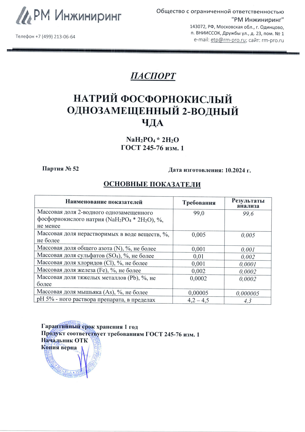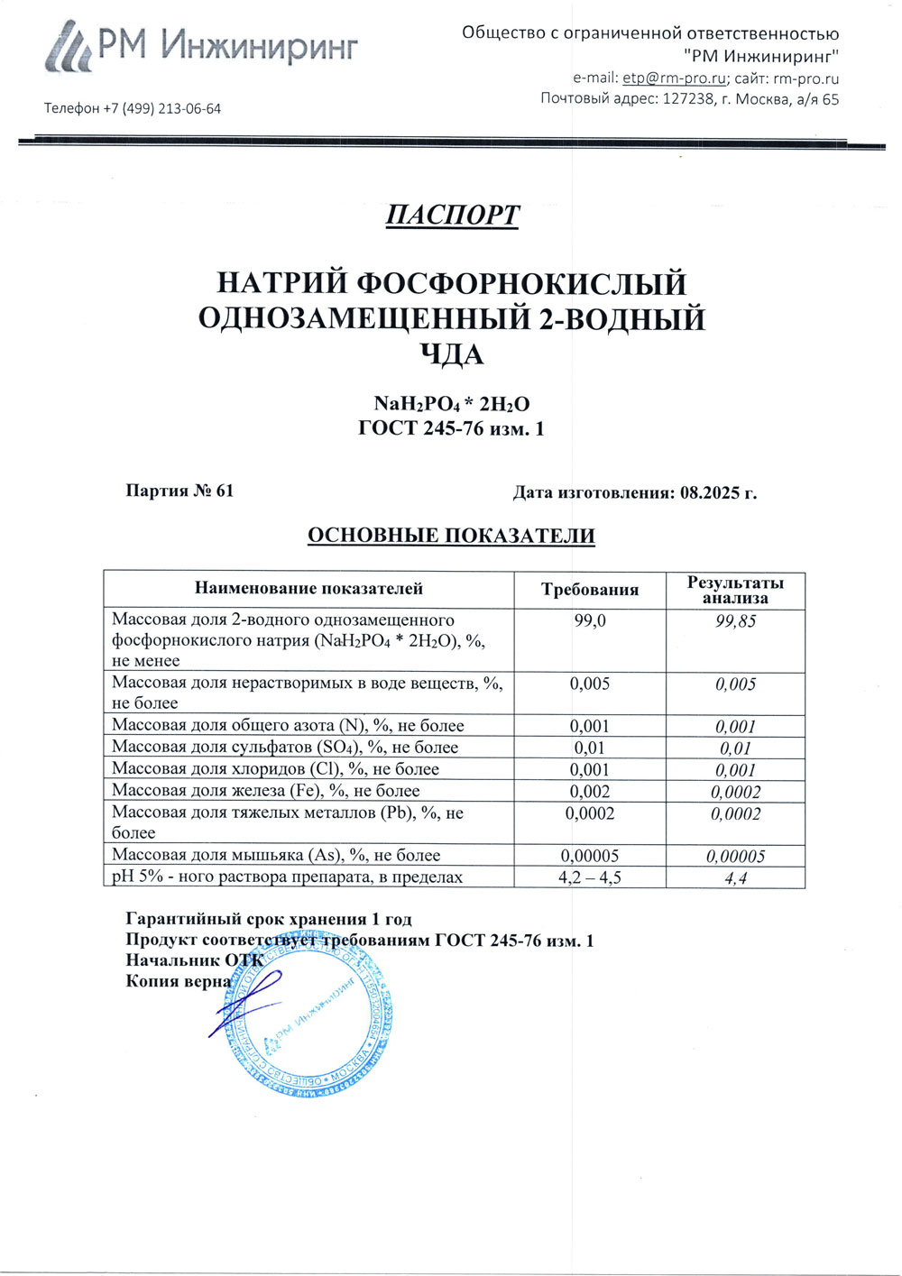 Натрий фосфорнокислый 1-замещ.,2-вод., чда, 1 кг