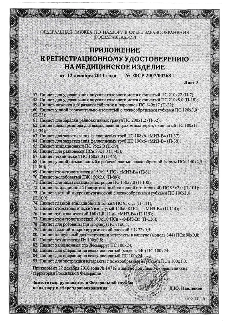 - Пинцет анатомический общего назначения 150х2,5 ПАи-МИЗ-В. Паспорт
