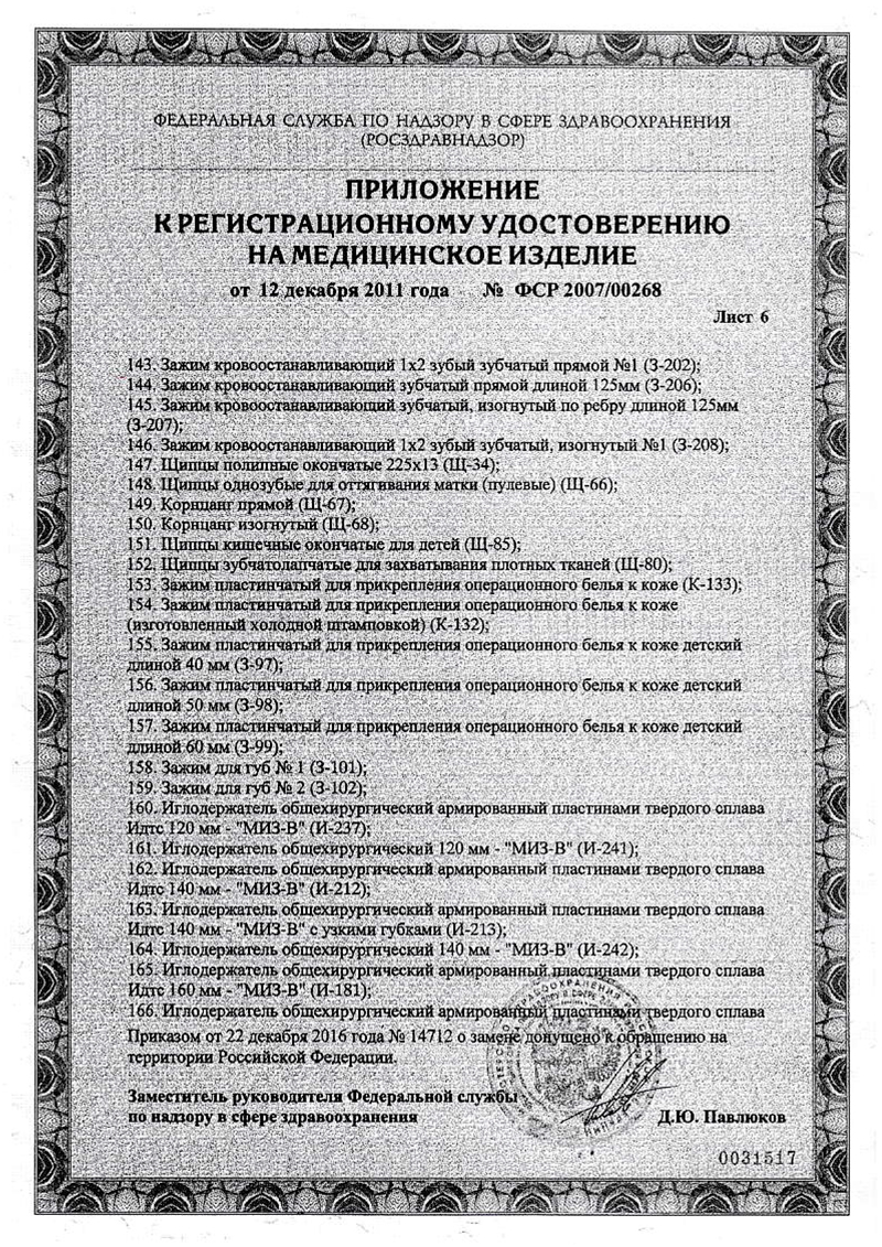 РУ № ФСР 2007/00268 от 12.12.2011 г.