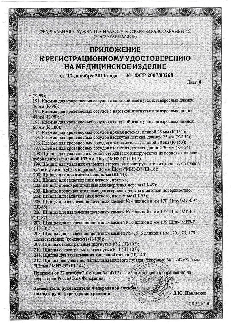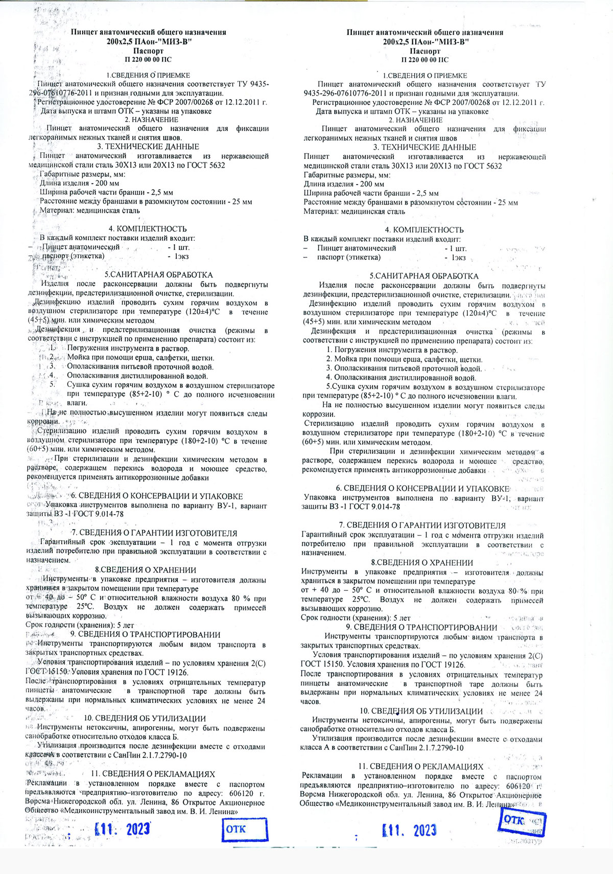 - Пинцет анатомический 200х2,5 ПАон-МИЗ-В. Паспорт