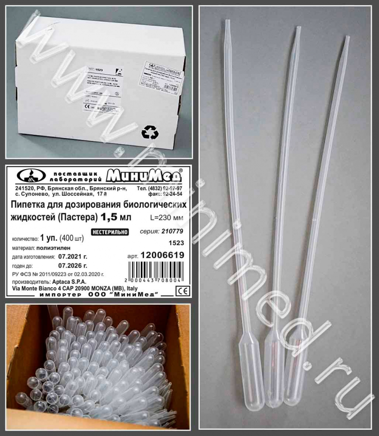 Пипетка для дозирования биологич.жидкостей (Пастера) 1,5 мл,230 мм,п/эт,н/стер, уп. 400 шт, Aptaca