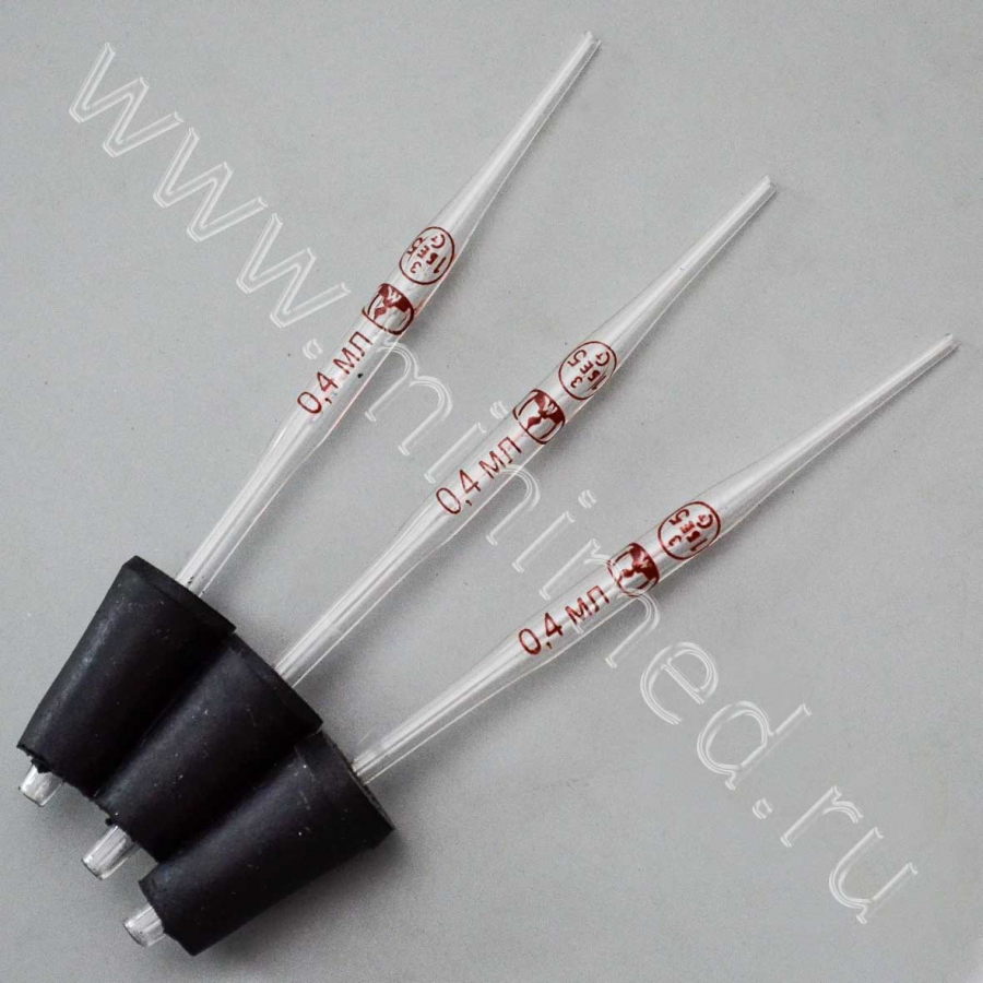 Пипетки вместимости к дозатору Флоринского 0,4+0,04 мл, тип 2, с пробкой, ТУ 9464-013-52876351-2014, уп. 20 шт, МиниМедПром